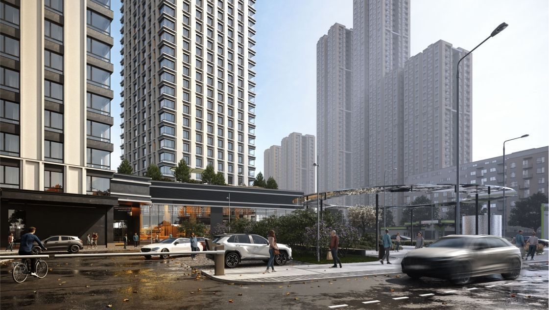 Cosmopolit 住宅区采用现代整体式技术建造,确保了高结构强度和耐用性。这种方法可以实现独特的建筑解决方案,包括复杂的几何形状和无中间支撑的大跨度,使其成为打造宽敞明亮的室内空间的理想选择。