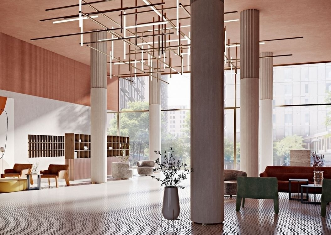 Lucky 的建筑方案由莫斯科 Meganom 建筑事务所(建筑师 Yuri Grigoryan)设计。该项目在视觉上将街区划分为两部分:“上城区”和“下城区”。“上城区”正在建造八栋 15-21 层的新住宅楼。这些塔楼的外墙采用铂金色阳极氧化铝板,并配有大型全景窗户和窄法式阳台,这种组合凸显了现代简约主义。建筑采用棋盘格布局,大多数公寓都拥有双面窗户,采光极佳。“下城区”由七栋保存完好的 19 世纪和 20 世纪历史建筑组成,形成一条完整的通道,两旁林立着商店和咖啡馆。“上城区”和“下城区”之间是公园般的广场和林荫大道。所有建筑均采用现代化的工程系统(热回收、空气和水过滤以及智能家居系统)。大堂和公共区域将由意大利设计师 Molteni Group 工作室设计。