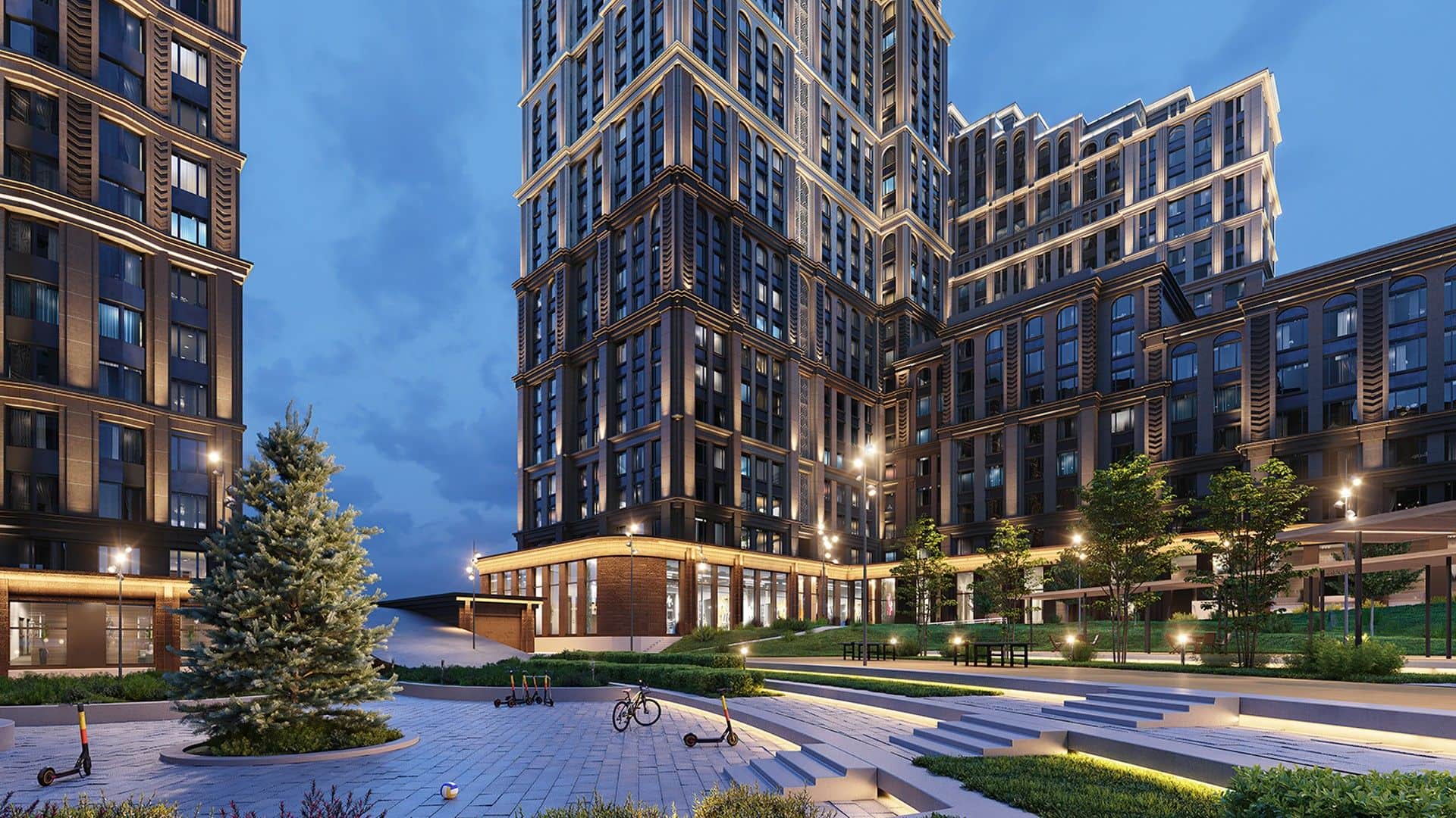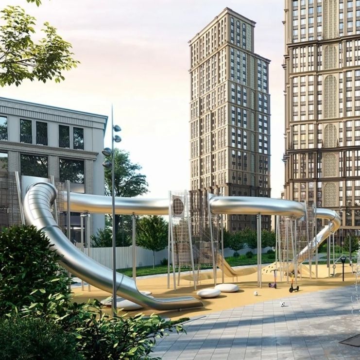 Территория комплекса будет огорожена и доступна исключительно жителям. Во дворах обустроят разнообразные детские и спортивные площадки, а также разобьют парк со стильными аркадами, галереями и декоративными элементами. Видеонаблюдение по периметру обеспечит спокойствие и контроль над безопасностью.