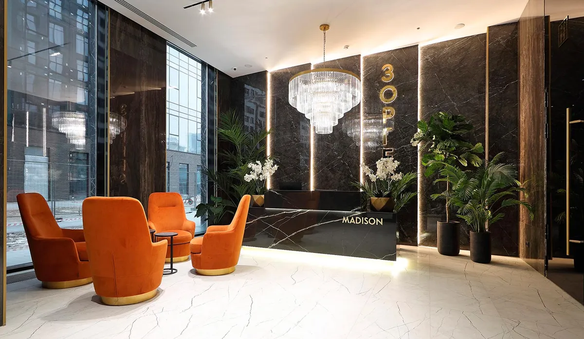 Консьерж-сервис 24/7. В каждом корпусе — просторное лобби с ресепшн. Консьержи принимают посылки, помогают с вызовом такси, бытовыми услугами, взаимодействуют с управляющей компанией.